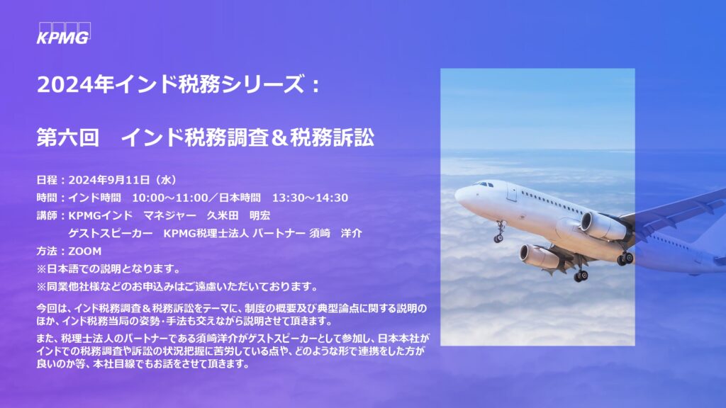 KPMGインド「インド税務シリーズ:第六回 インド税務調査&税務訴訟」のご案内