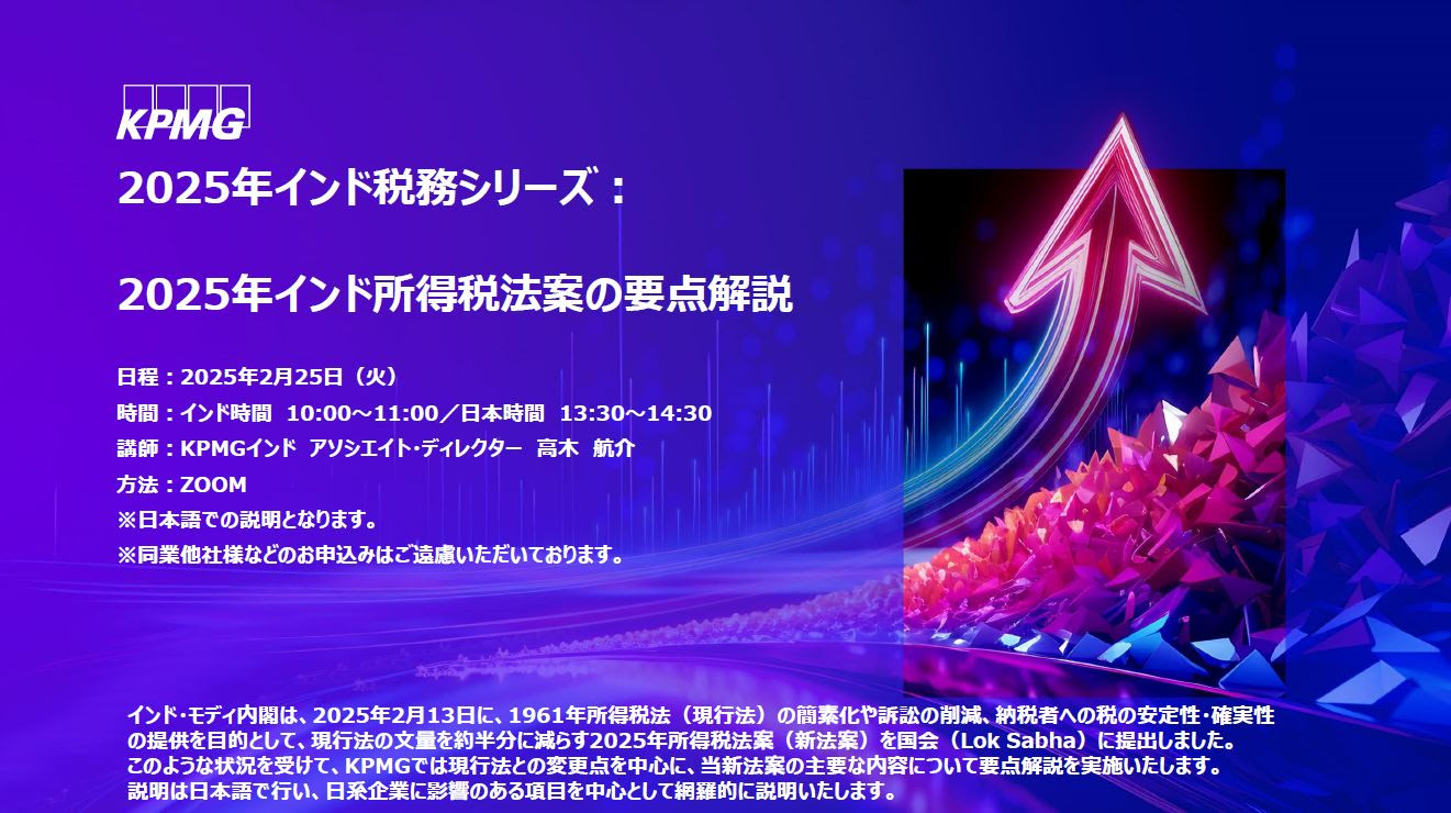 KPMGインド「2025年税務シリーズ:2025年インド所得税法案の要点解説」のご案内