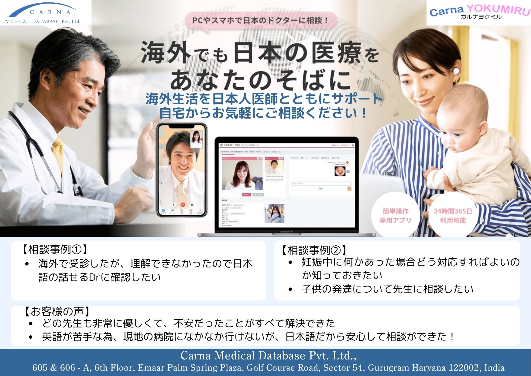 【インドでも日本の医療をあなたのそばに】オンライン健康医療相談 CarnaYOKUMIRUのご案内