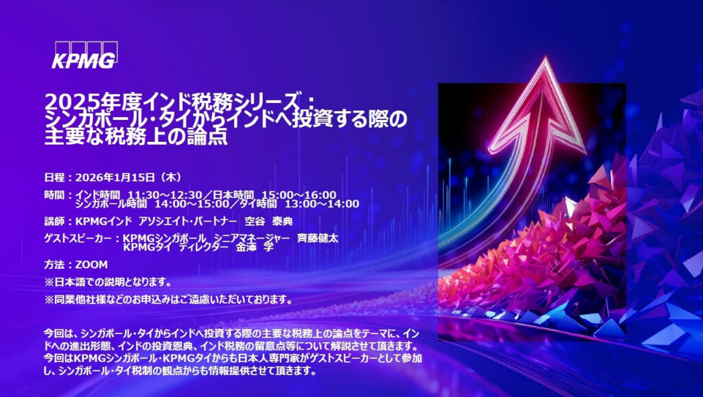 KPMGインド2025年度インド税務シリーズ:シンガポール・タイからインドへ投資する際の主要な税務上の論点