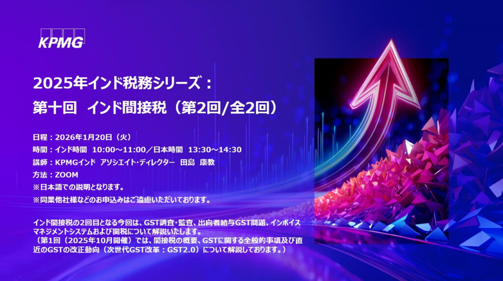 KPMGインド「2025年インド税務シリーズ:第十回 インド間接税(第2回/全2回)」のご案内